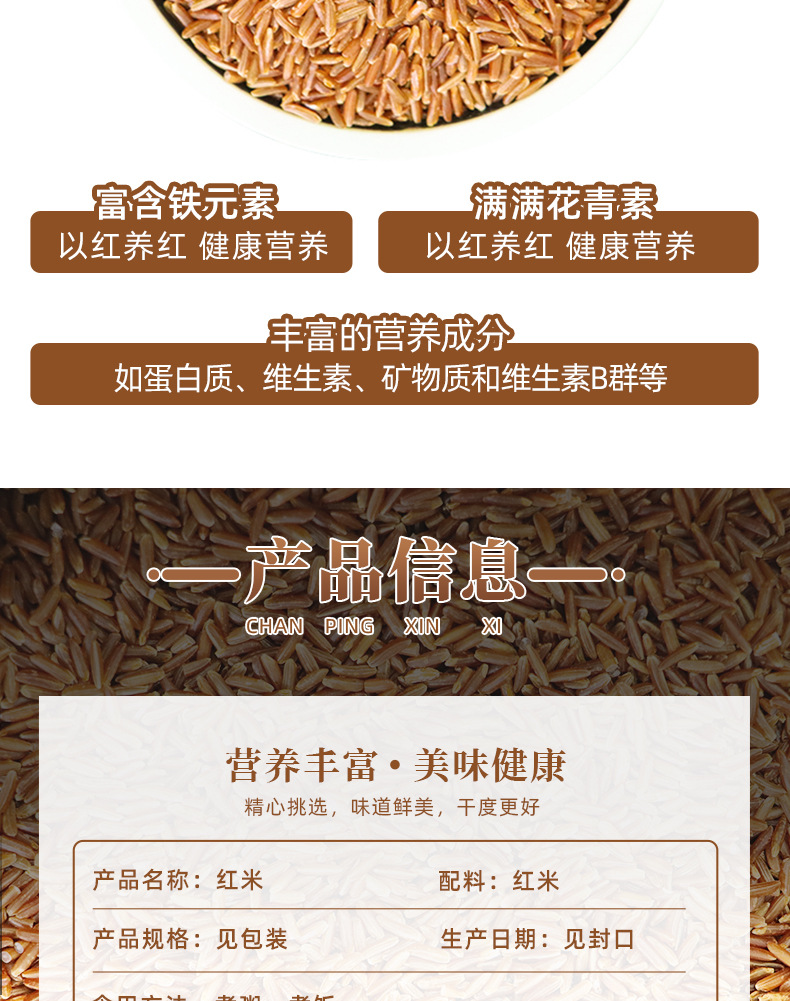 商品名称:新米红米杂粮真空装煮粥糙米饭农家自产低脂健身红大米红糙米
