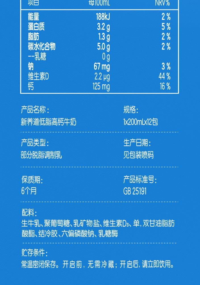 商品名称:蒙牛低脂高钙营养奶