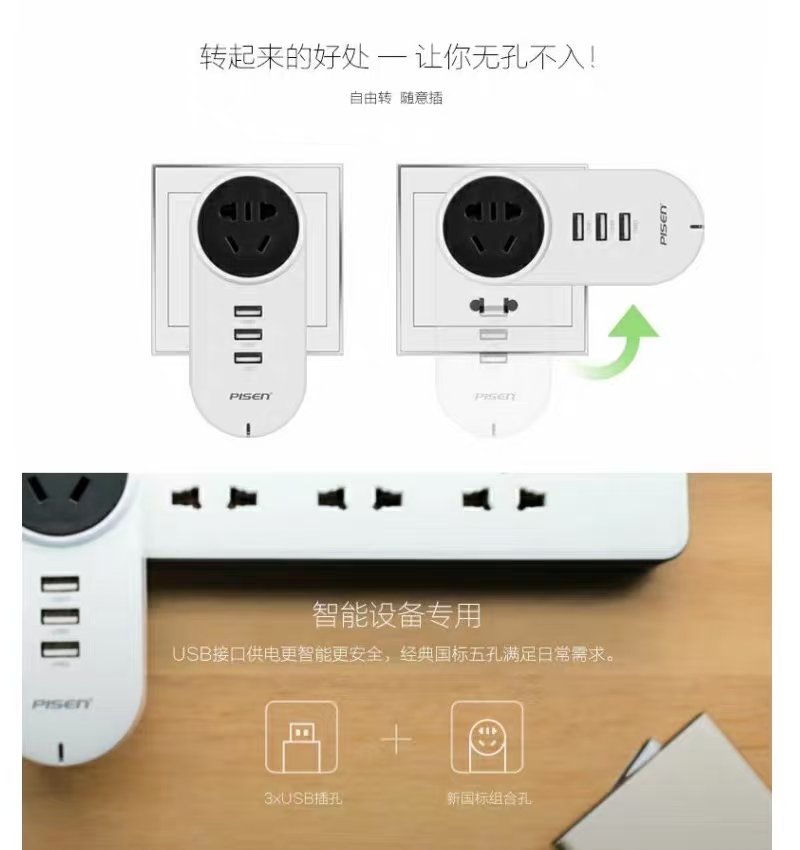 品胜K-13可旋转插排