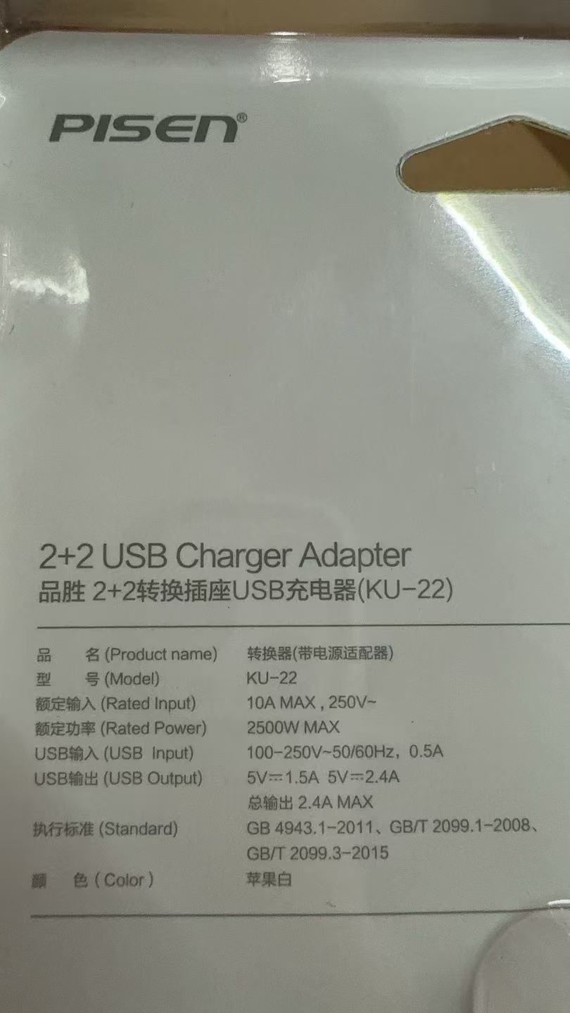 商品名称:品胜 KU-22 2+2转换插座