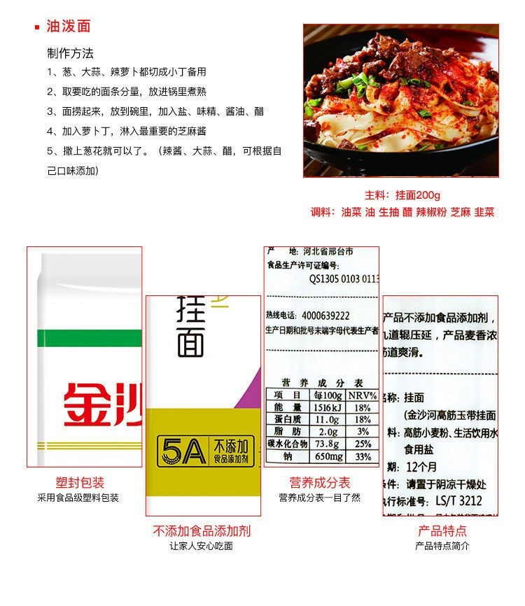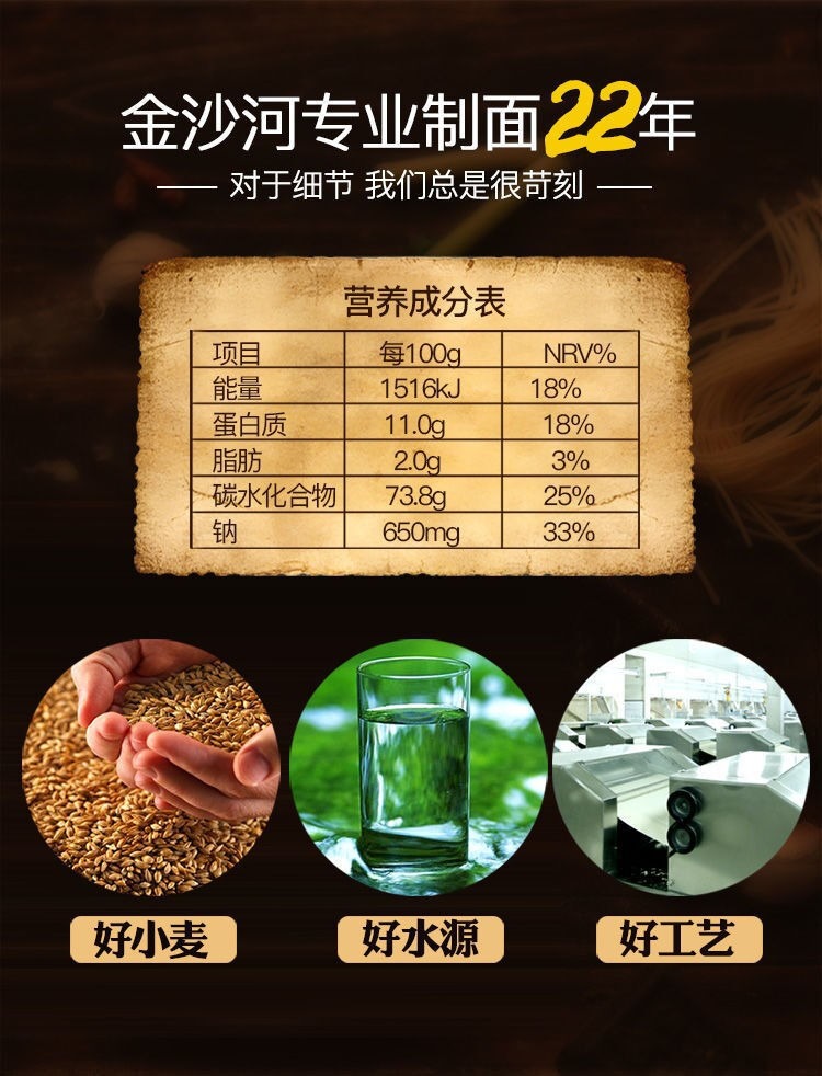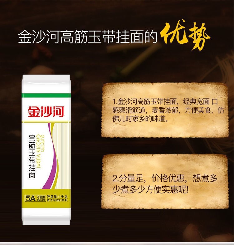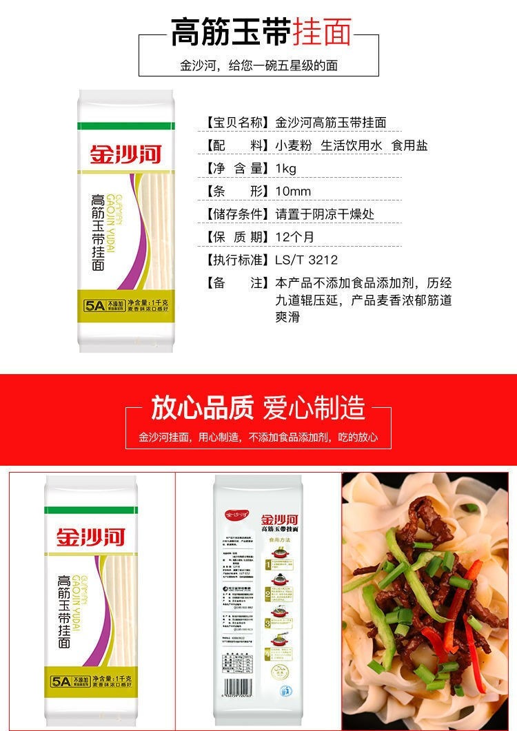商品名称:金沙河 高筋玉带挂面 1kg*3包