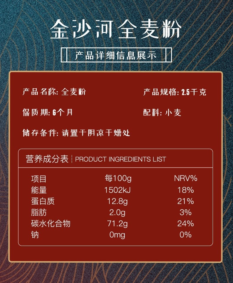 商品名称:金沙河 全麦粉 2.5kg*1袋