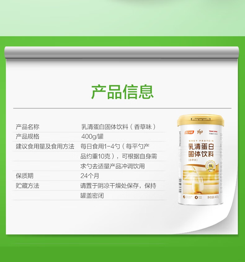 商品名称:汤臣倍健乳清蛋白固体饮料400g