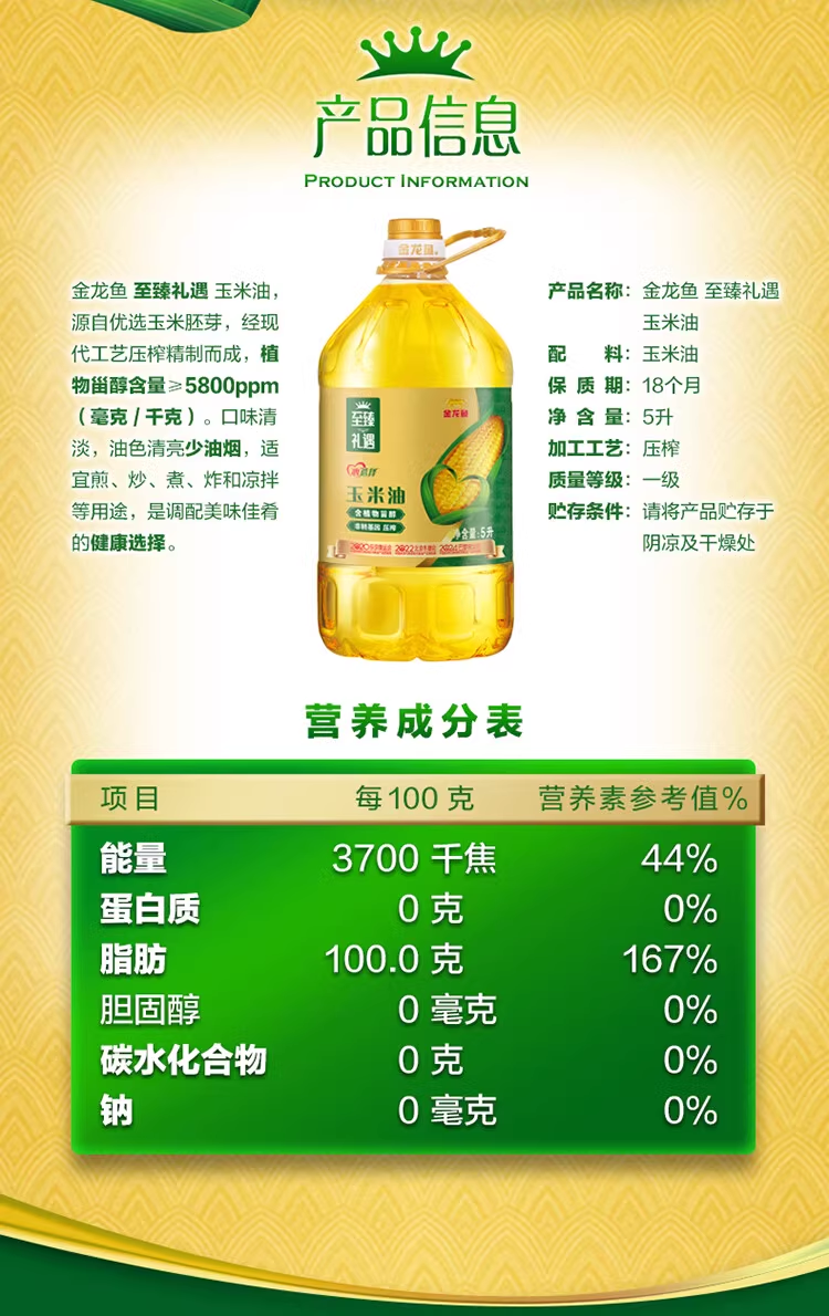 商品名称:金龙鱼至臻礼遇玉米油5L