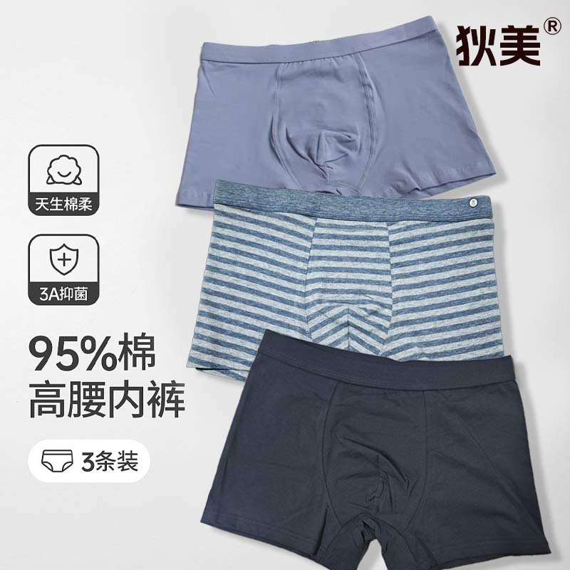 狄美男士四角透气抗菌内裤3条装(颜色随机...