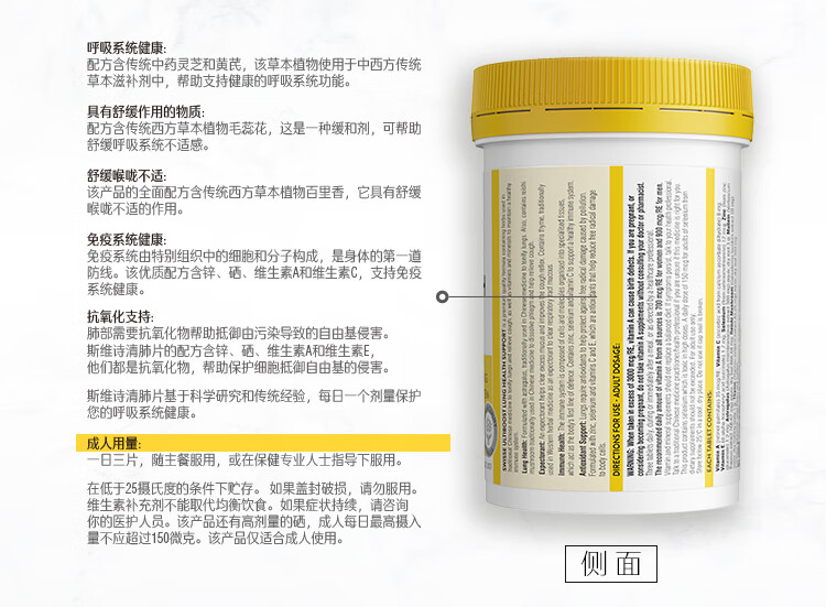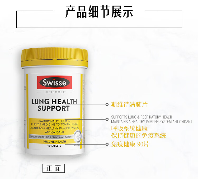 商品名称:Swisse斯维诗清肺片90片