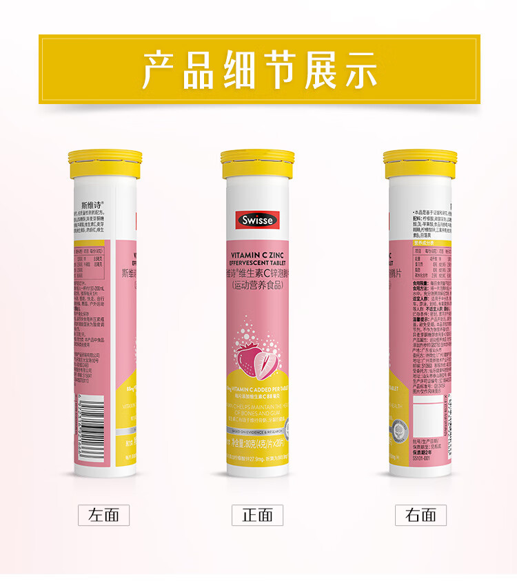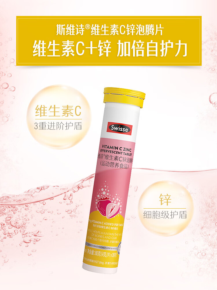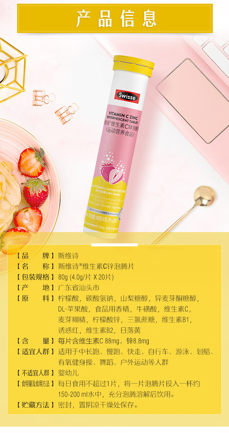 商品名称:斯维诗维生素C+锌泡腾片清新草莓味