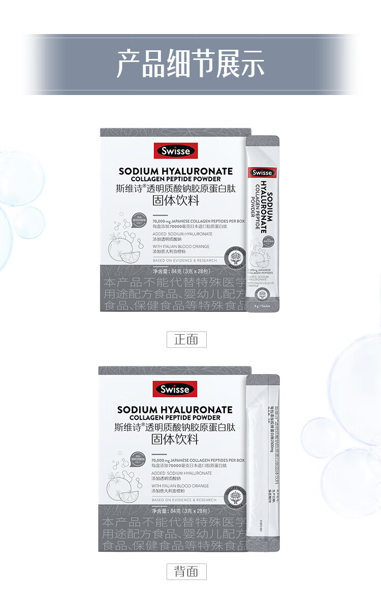 商品名称:斯维诗透明质酸钠胶原蛋白肽固体饮料3g*28袋