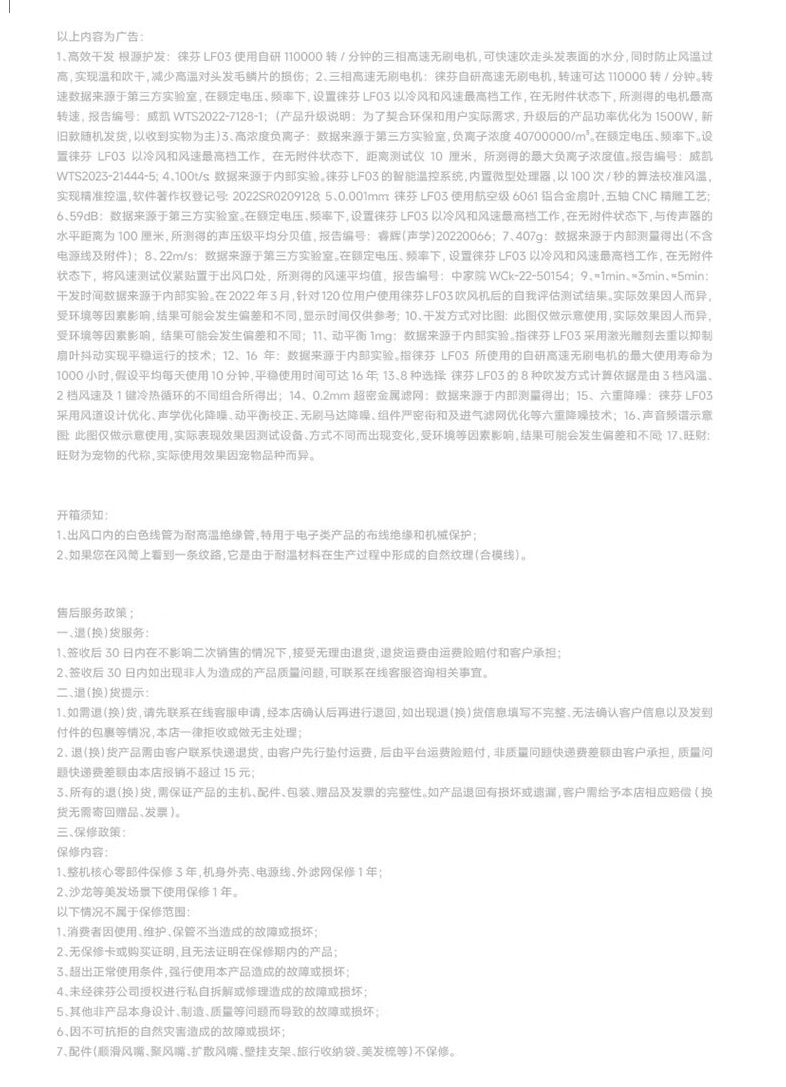 商品名称:徕芬新一代高速吹风机LF03