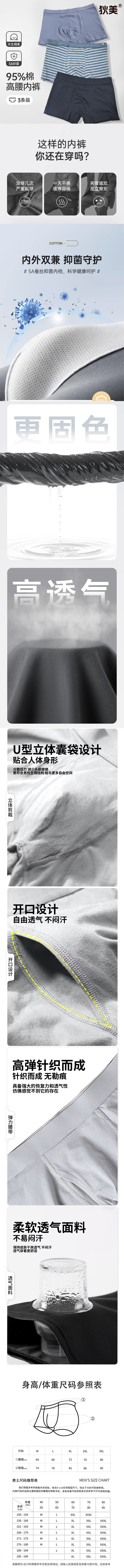 商品名称:狄美男士四角透气抗菌内裤3条装(颜色随机)