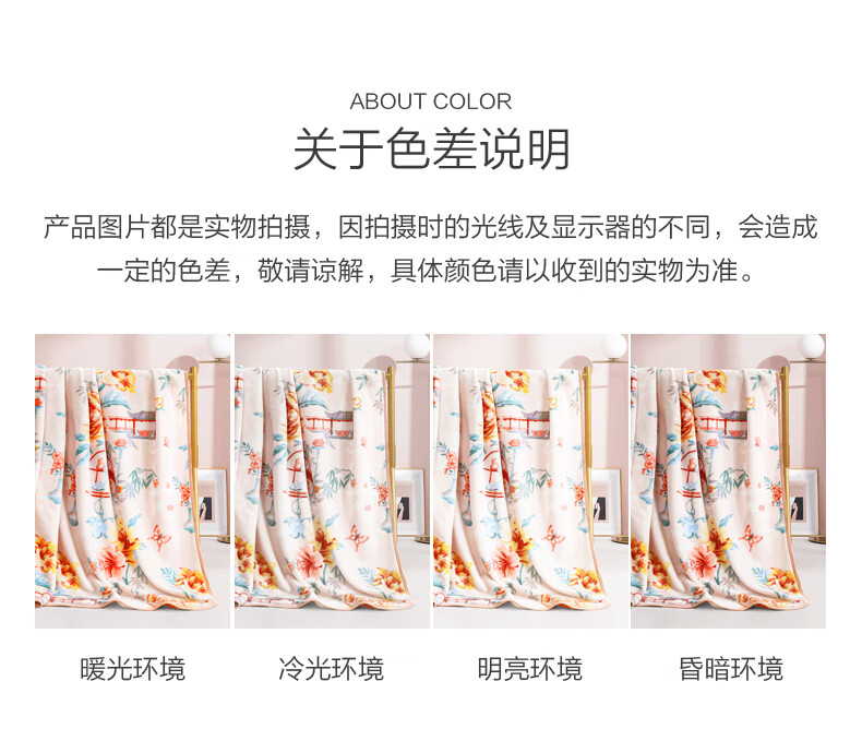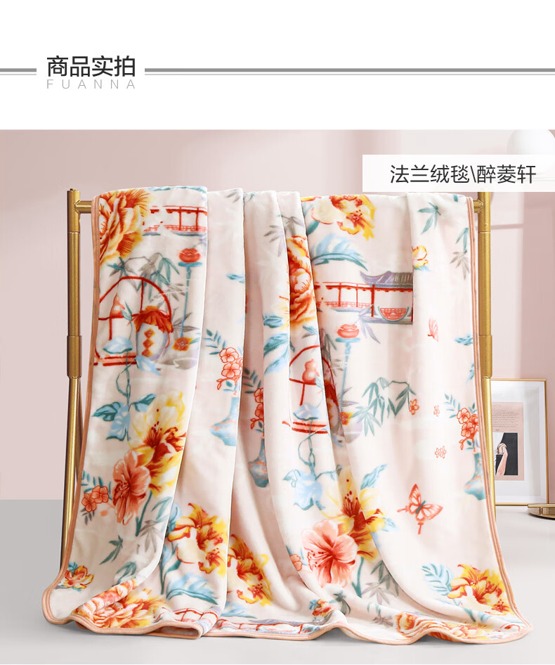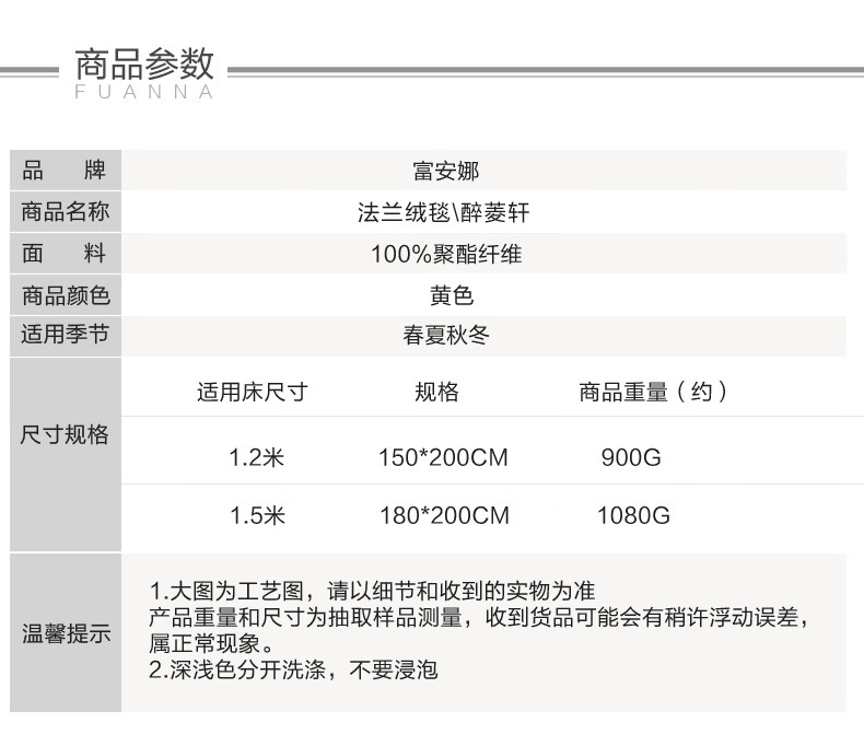 商品名称:富安娜180*200cm 法兰绒毯醉菱轩 黄色