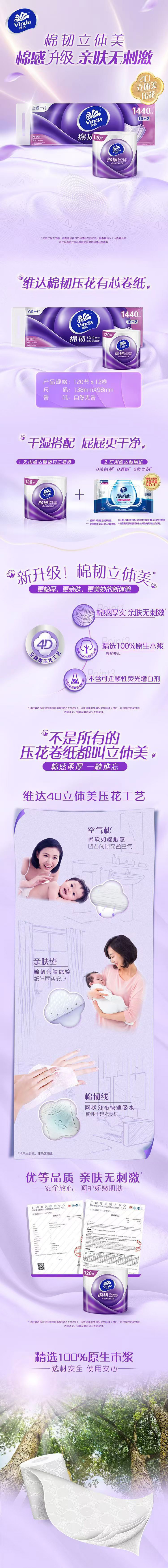 商品名称:维达卷纸卫生纸家用实惠装立体美有芯大卷筒纸棉韧厕所纸手纸(2提)