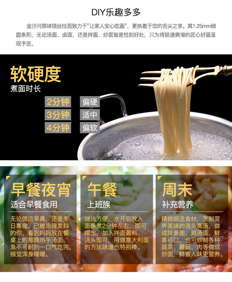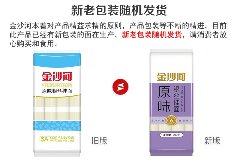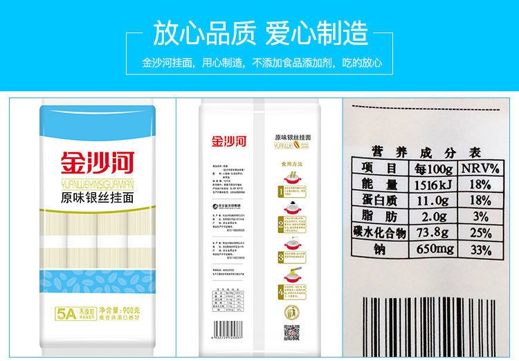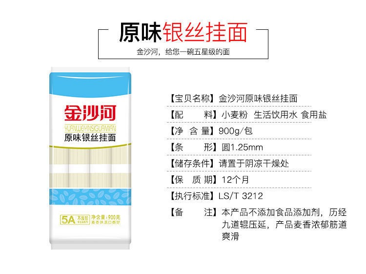 商品名称:金沙河 原味银丝挂面 900g*3包