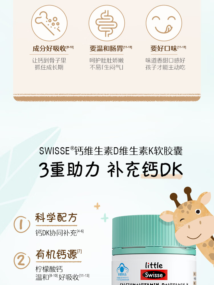 商品名称:斯维诗儿童钙维生素D维生素K软胶囊60粒