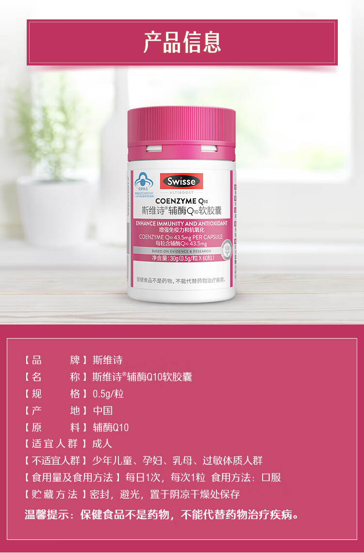 商品名称:斯维诗辅酶Q10软胶囊60粒