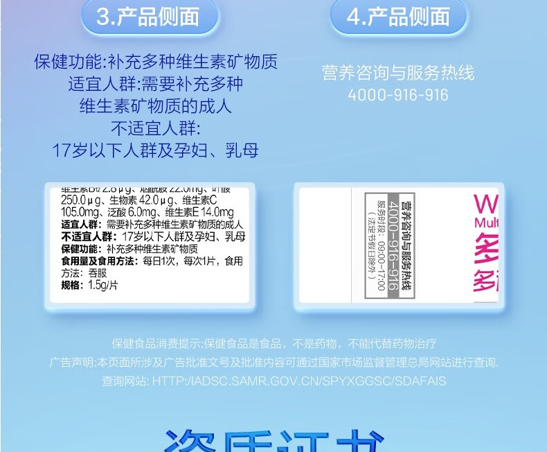 商品名称:汤臣倍健多维女士多种维生素矿物质片60片*2瓶