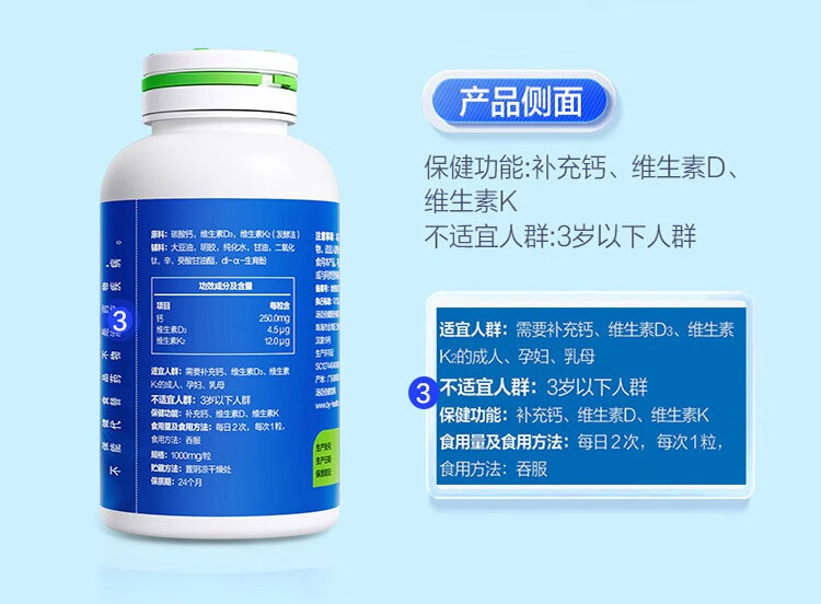 商品名称:汤臣倍健钙维生素D维生素K软胶囊200粒*2瓶
