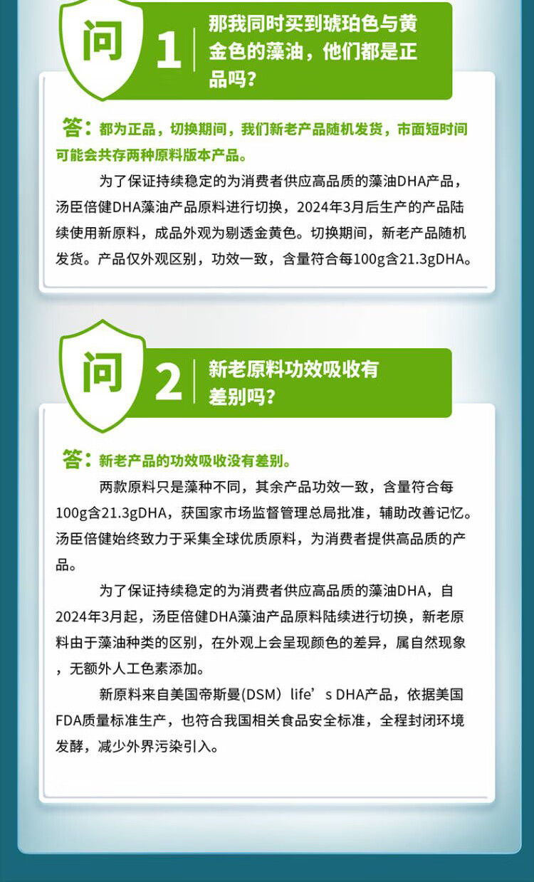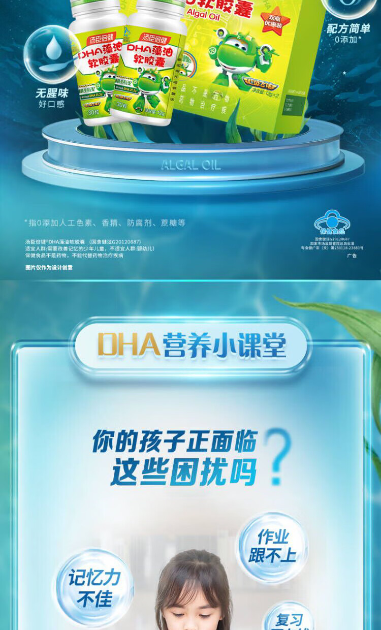 商品名称:汤臣倍健DHA藻油软胶囊30粒*2瓶