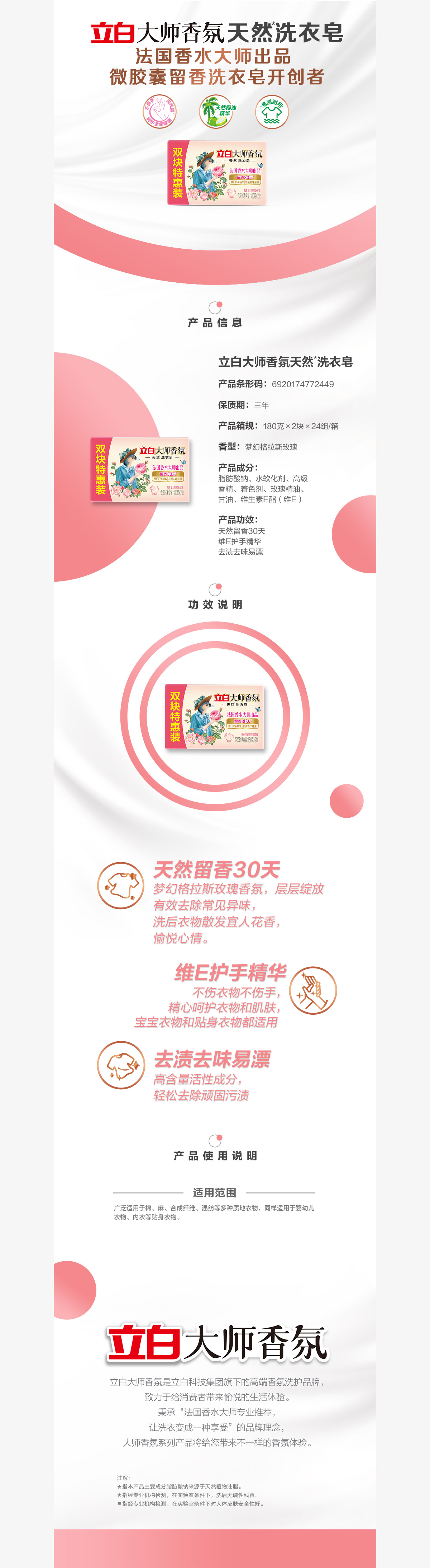 商品名称:立白大师香氛天然洗衣皂(格拉斯玫瑰)180g*2
