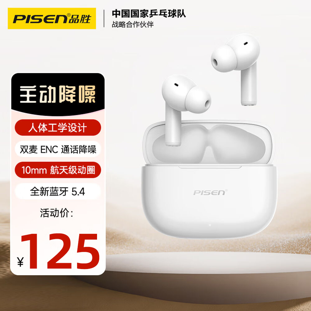 品胜真无线蓝牙耳机入耳式蓝牙5.4长续航音乐低延迟主动降噪耳...