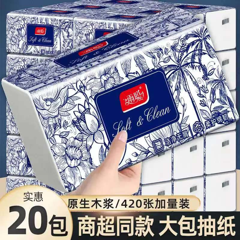 雨聪青花瓷家用大包抽纸整箱20包