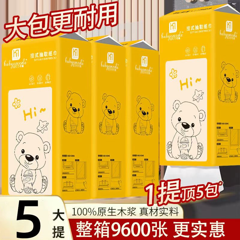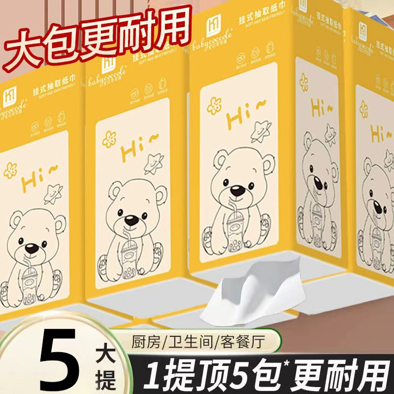 小熊5提白色挂式抽取纸巾100%原生木浆