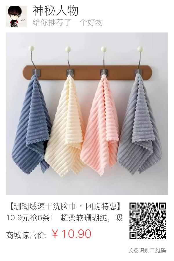 【珊瑚绒速干洗脸巾 · 团购特惠】10.9元抢6条! 超柔软珊瑚绒,吸水强、速干不闷味,洗脸/卸妆/擦手都超舒服