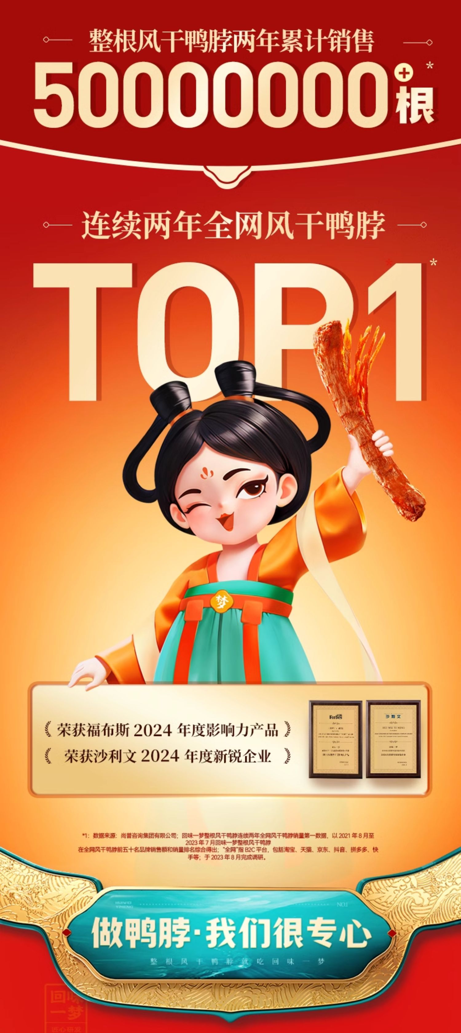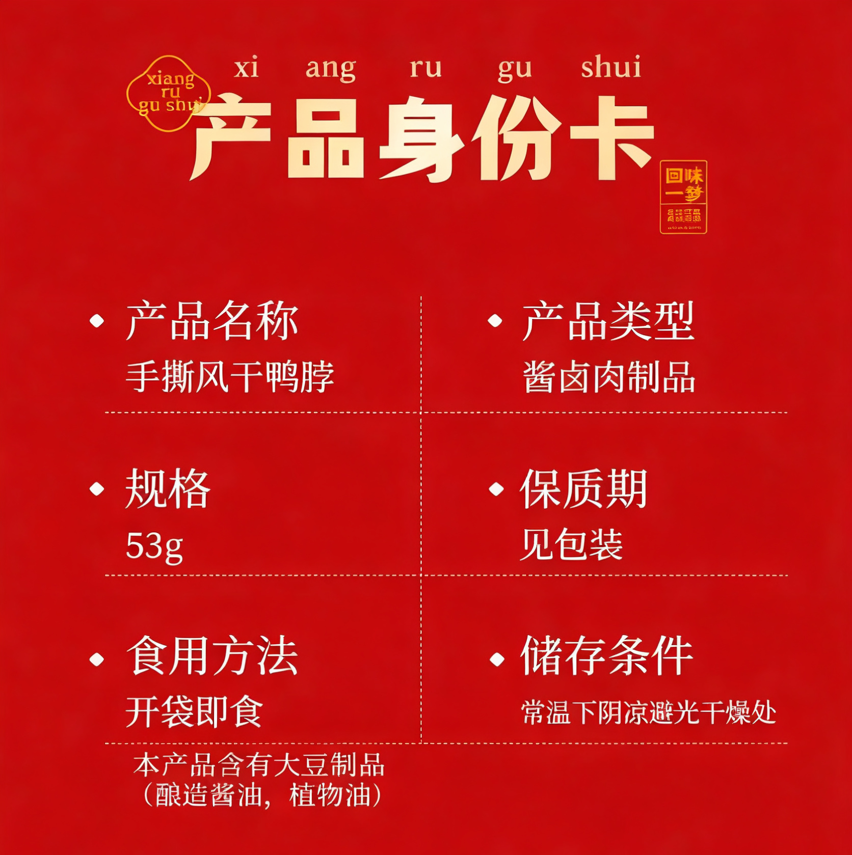 商品名称:回味一梦风干手撕鸭脖6根装53g/根 (黑鸭味、香辣味)