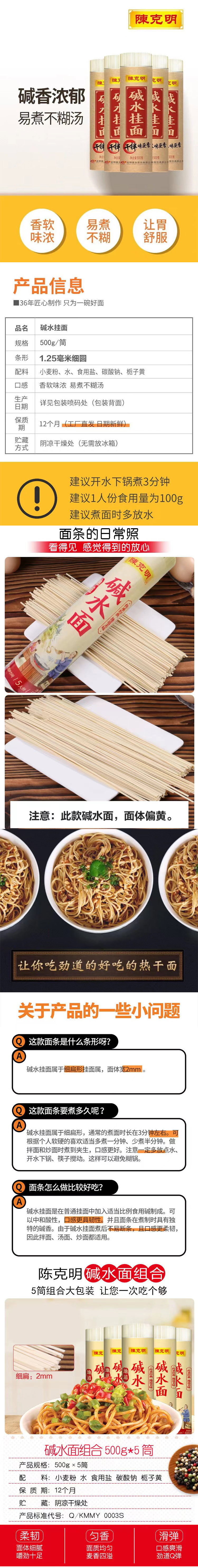 商品名称:陈克明 碱水挂面 500g*5筒