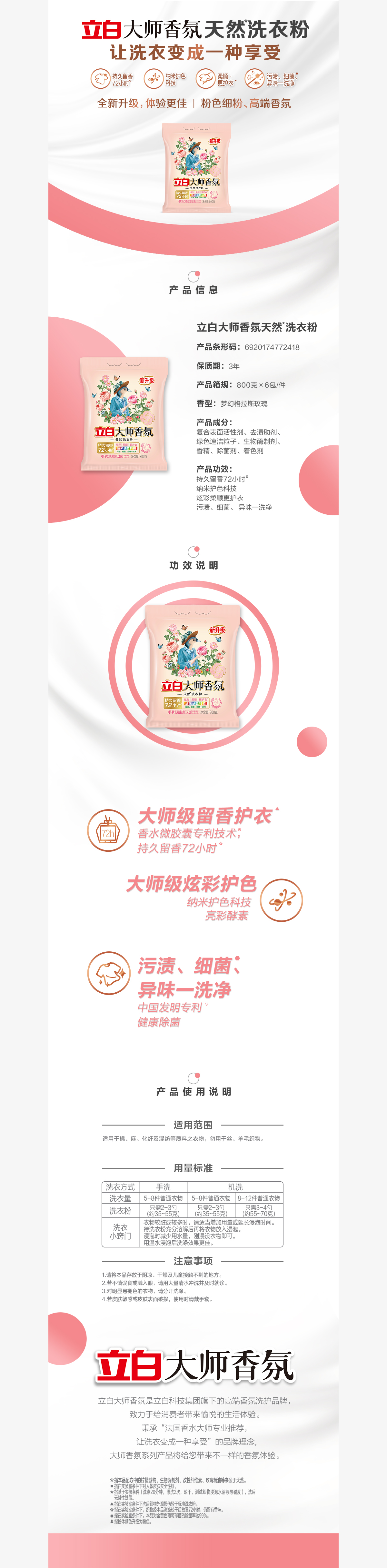 商品名称:立白大师香氛无磷型洗衣粉(格拉斯玫瑰)800g