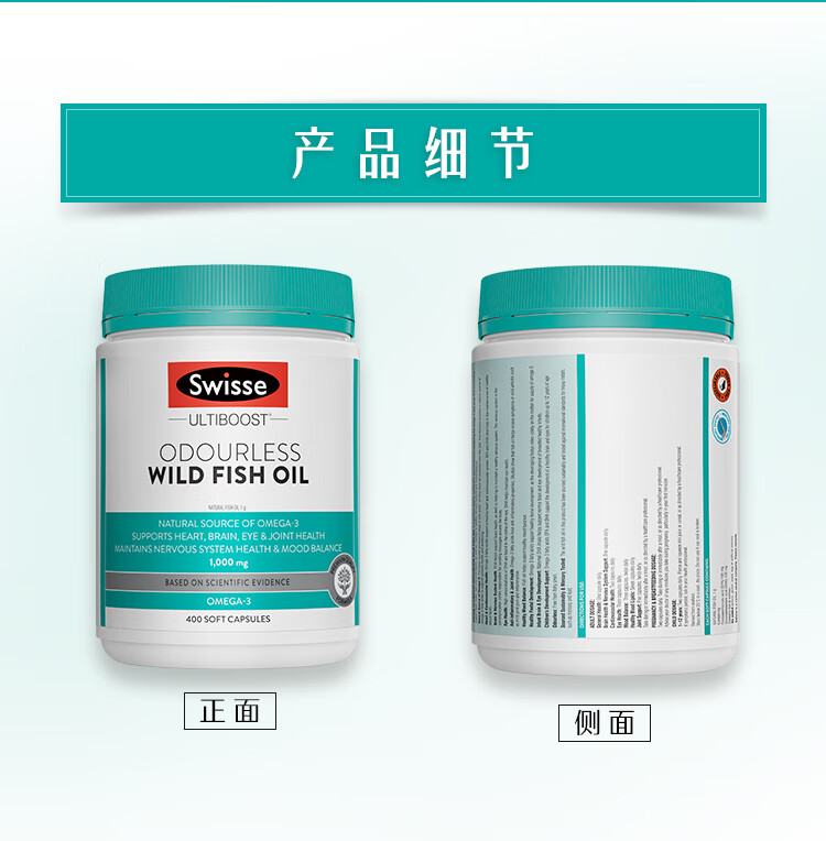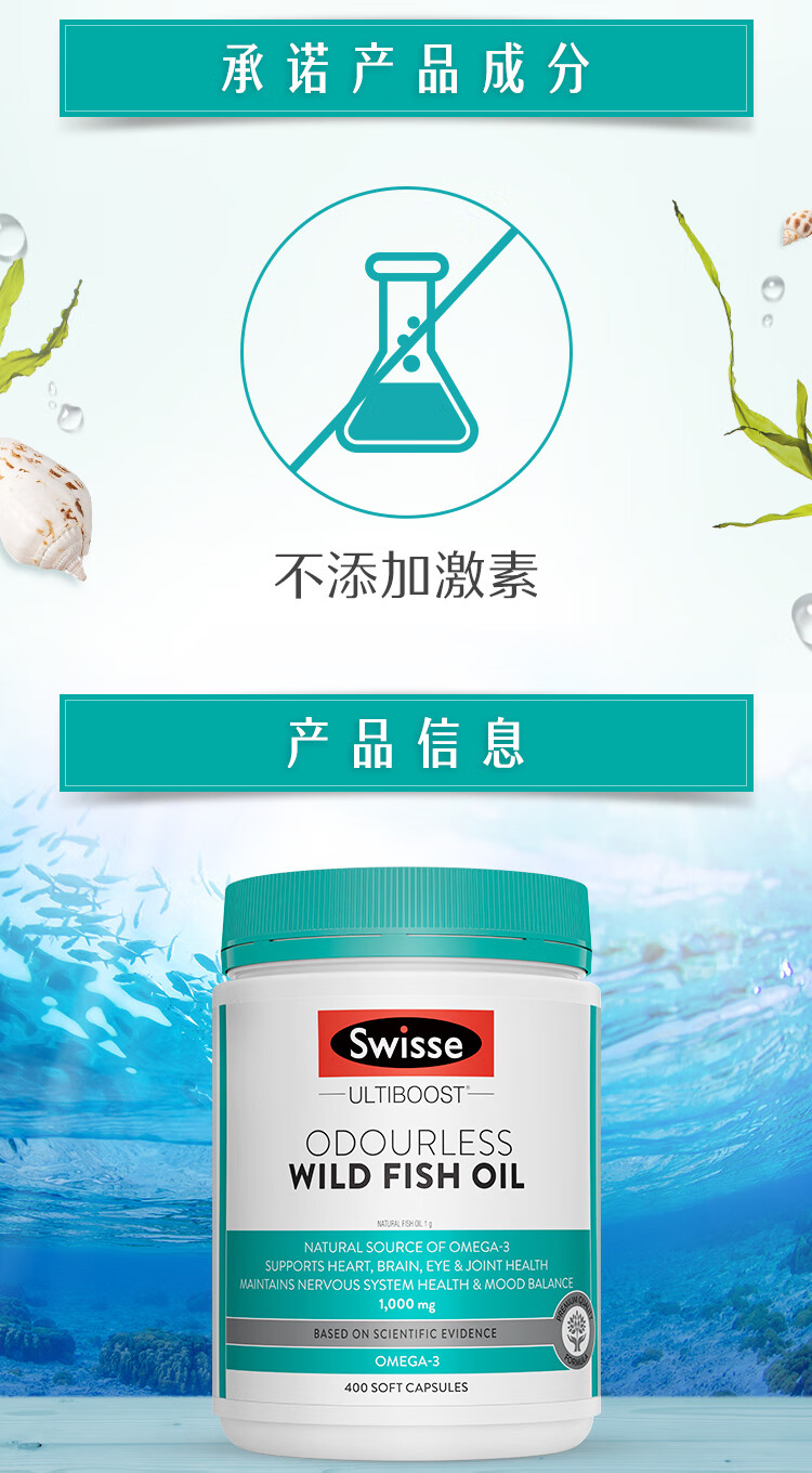 商品名称:Swisse斯维诗无腥味野生鱼油胶囊1000mg400粒