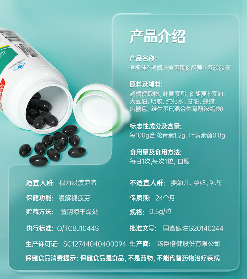 商品名称:汤臣倍健越橘叶黄素酯β-胡萝卜素软胶囊45粒*2