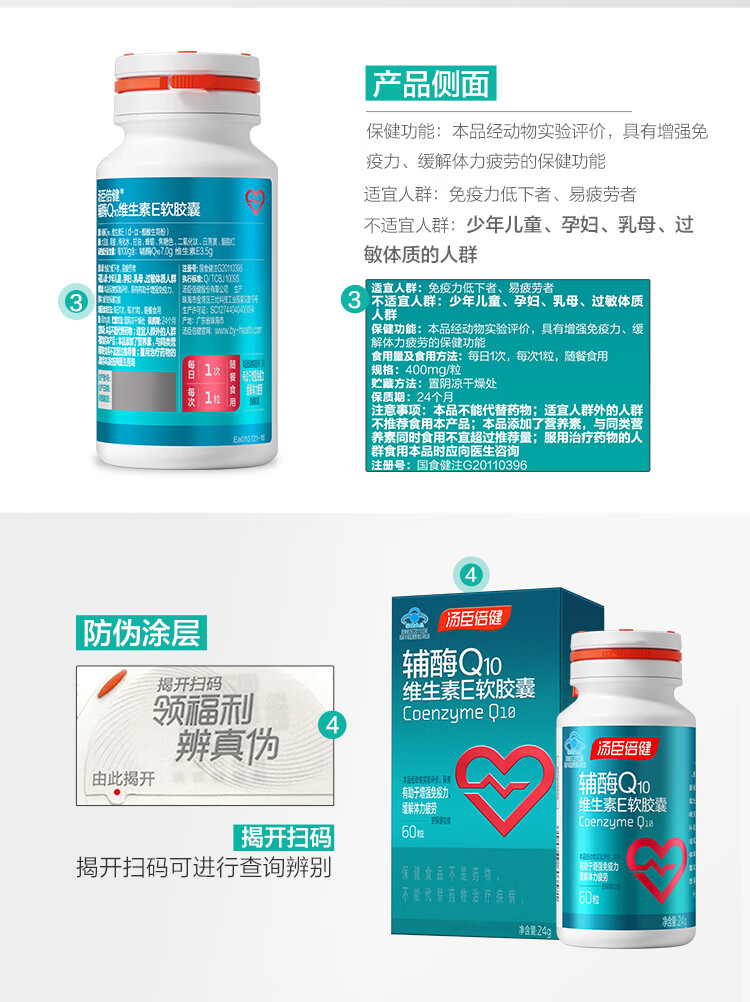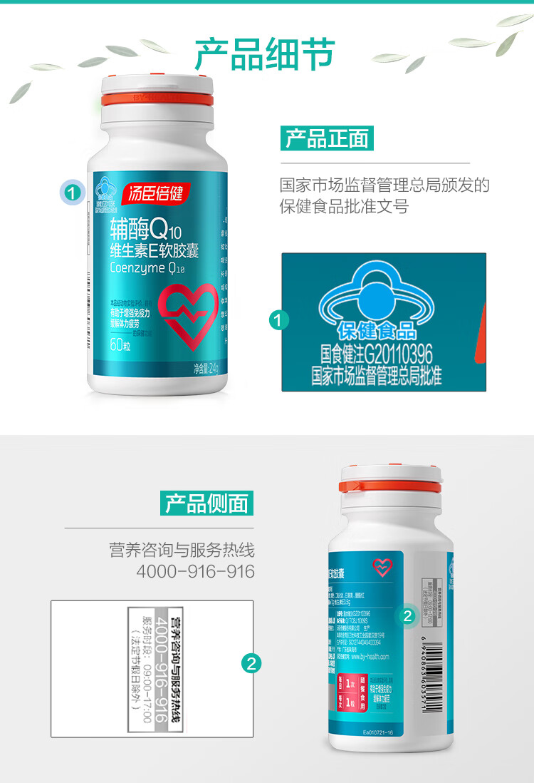商品名称:汤臣倍健辅酶Q10维生素E软胶囊彩盒装(400mg*60粒)