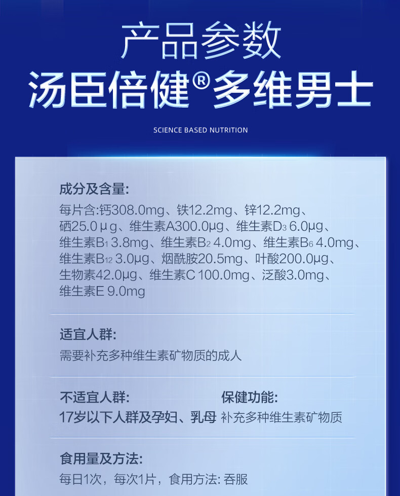 商品名称:汤臣倍健多维男士多种维生素矿物质片(60片)