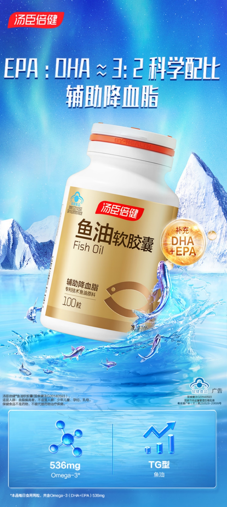商品名称:汤臣倍健鱼油软胶囊(100粒)*2+vc30片*1