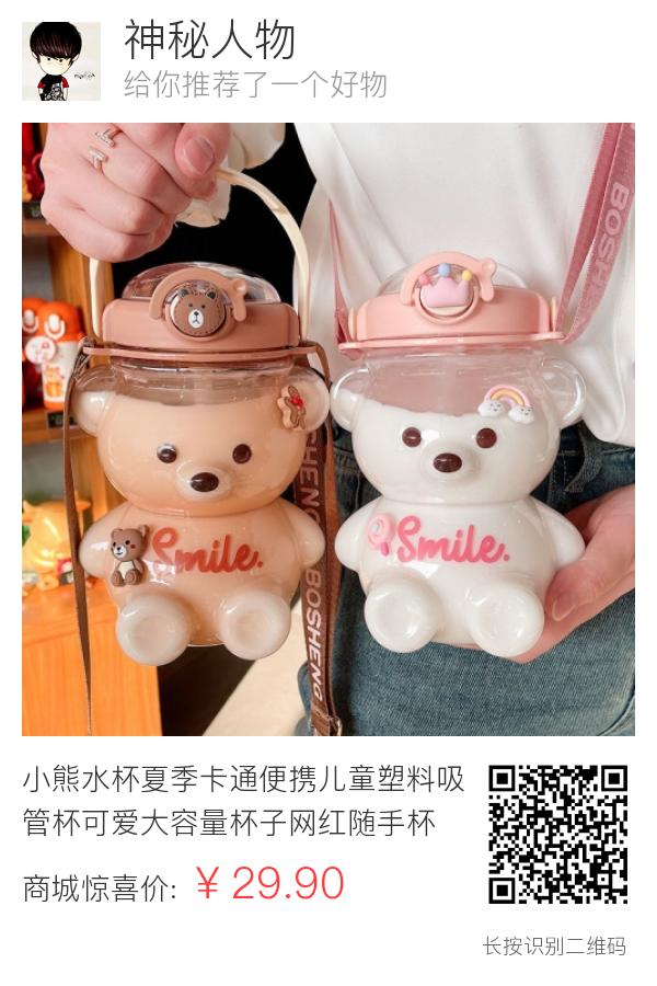小熊水杯夏季卡通便携儿童塑料吸管杯可爱大容量杯子网红随手杯